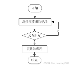 管理员可以对通知公告、超市资讯、超市中心商品列表等进行信息的删除,对要删除的信息进行选中后,点击删除按钮,系统会询问是否确定,若点击确定,则系统会删除掉选中的信息,并在数据库内对信息进行删除,删除信息流程图如图2-6所示。
