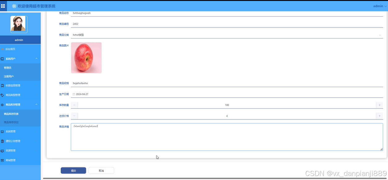 商品库存管理:管理员可以管理超市的商品库存信息,包括商品的入库、出库、盘点等。
