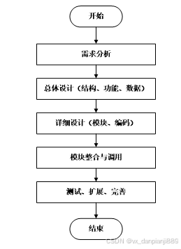 基于web的超市管理系统开发时,首先进行需求分析,进而对系统进行总体的设计规划,设计系统功能模块,数据库的选择等,本系统的开发流程如图2-1所示。