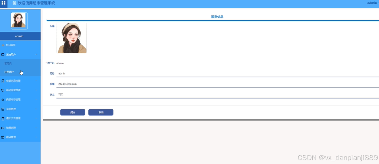收银信息管理:管理员可以管理超市的收银信息,包括查删增改收银信息等。