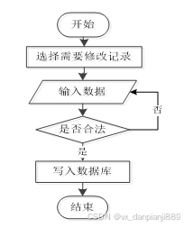 管理员可以对通知公告、超市资讯、超市中心商城管理列表等进行的修改,用户可以对自己权限内的信息进行修改,首先进入修改信息界面,输入修改信息数据,系统进行数据的判断验证,修改信息合法则修改成功,信息更新至数据库,信息不合法则修改失败,重新输入。修改信息流程图如图2-5所示。