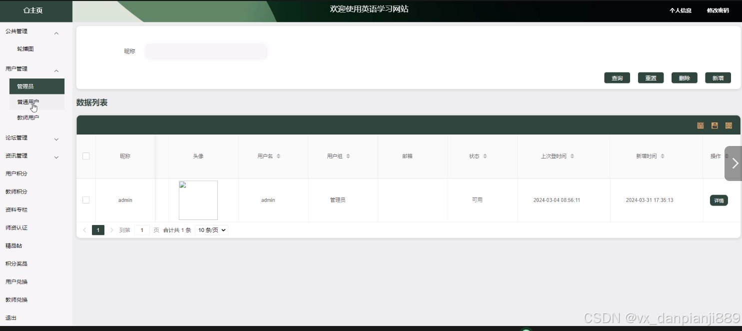 In summary, the design and implementation of an English learning website based on Spring Boot have important practical significance and application value. Through the application of this website, we can provide English learners with a more efficient, convenient, and personalized learning experience, promoting innovation and development in English education.