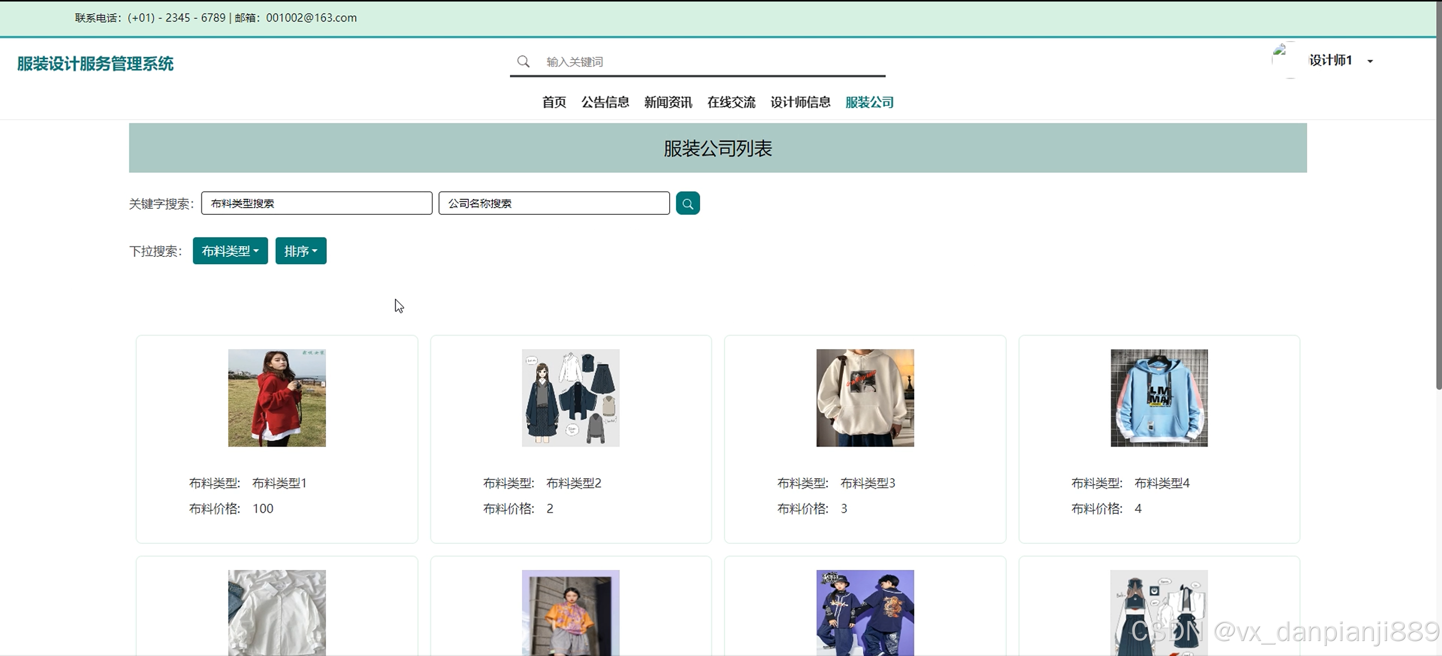 (1)服装公司:集成服装公司信息板块,展示合作企业的详细资料、设计需求及合作案例,便于设计师寻找合适的合作伙伴或了解市场需求。