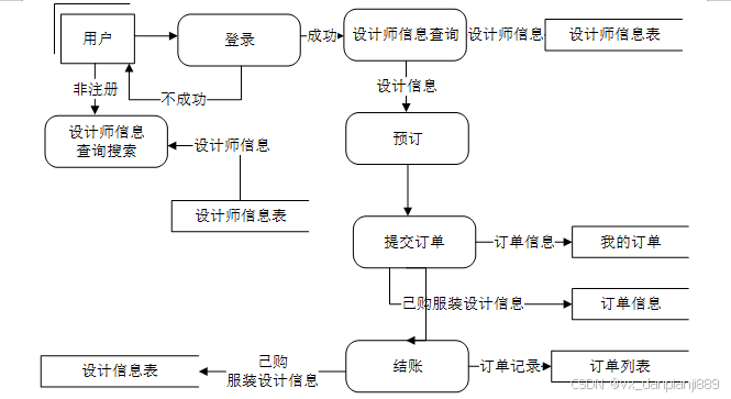 服装设计服务管理系统主要的目的就是实现对设计师信息的在线购买交易,图3-3就是系统的数据流图。