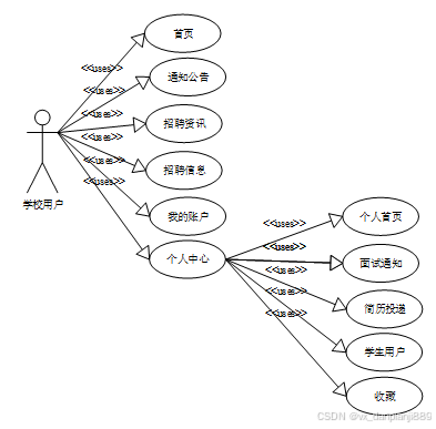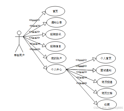 学生用户: 学校用户可以查看学生用户信息,包括注册情况、就业意向等。