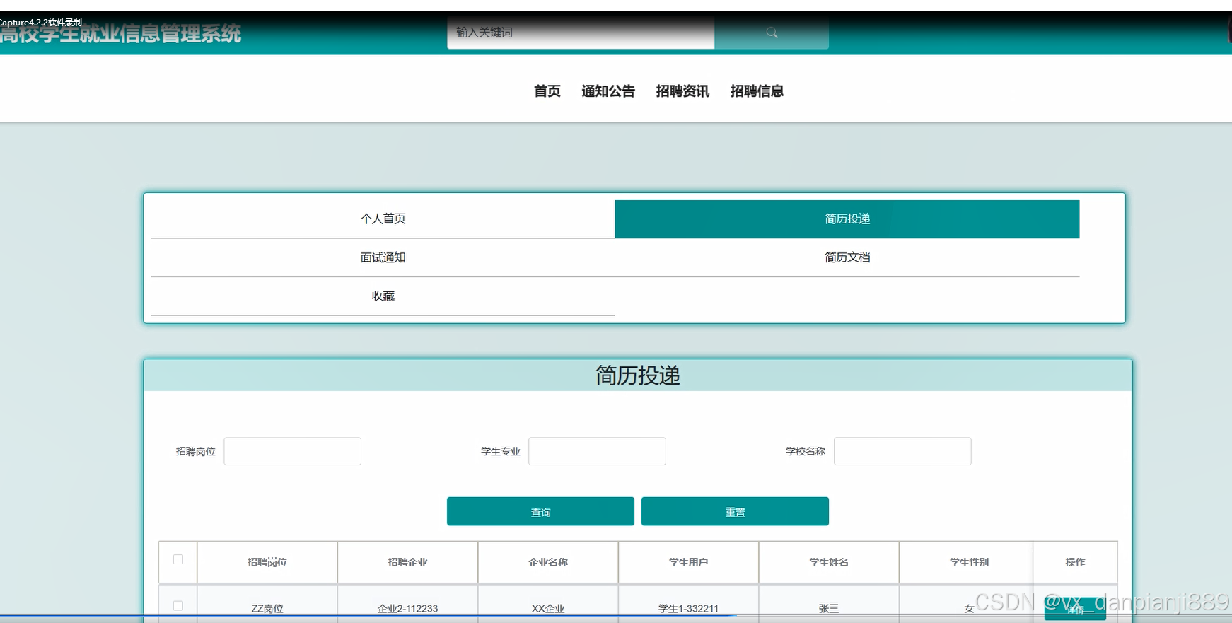 简历投递: 提供简历投递功能,让学生方便地投递个人简历给感兴趣的企业。
