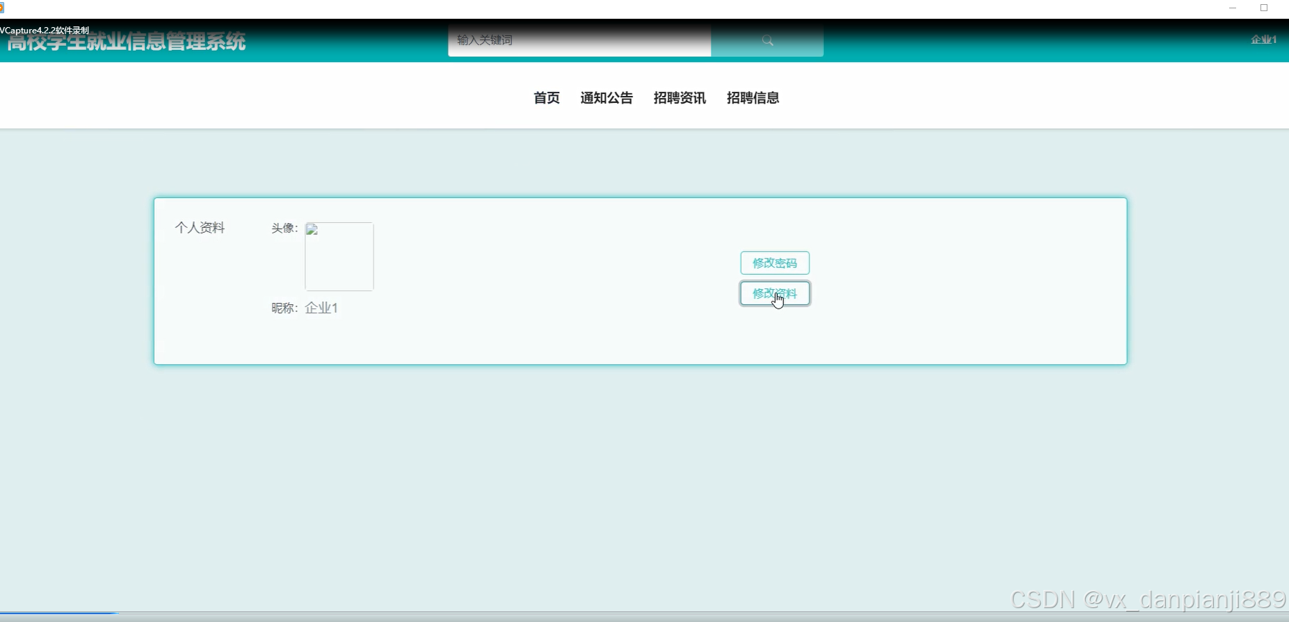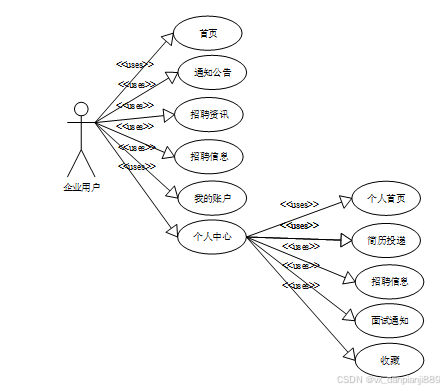 个人首页: 展示企业用户的基本信息和招聘动态。