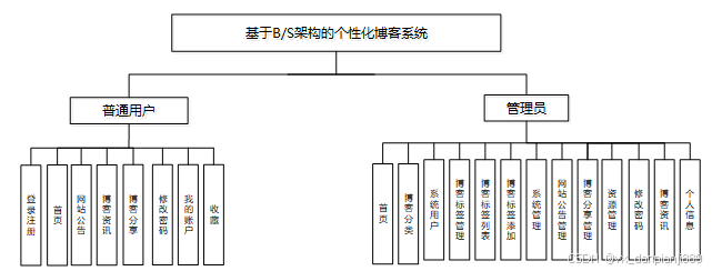 按照个性化博客系统的角色,划分为了用户模块、管理员模块这两大部分。