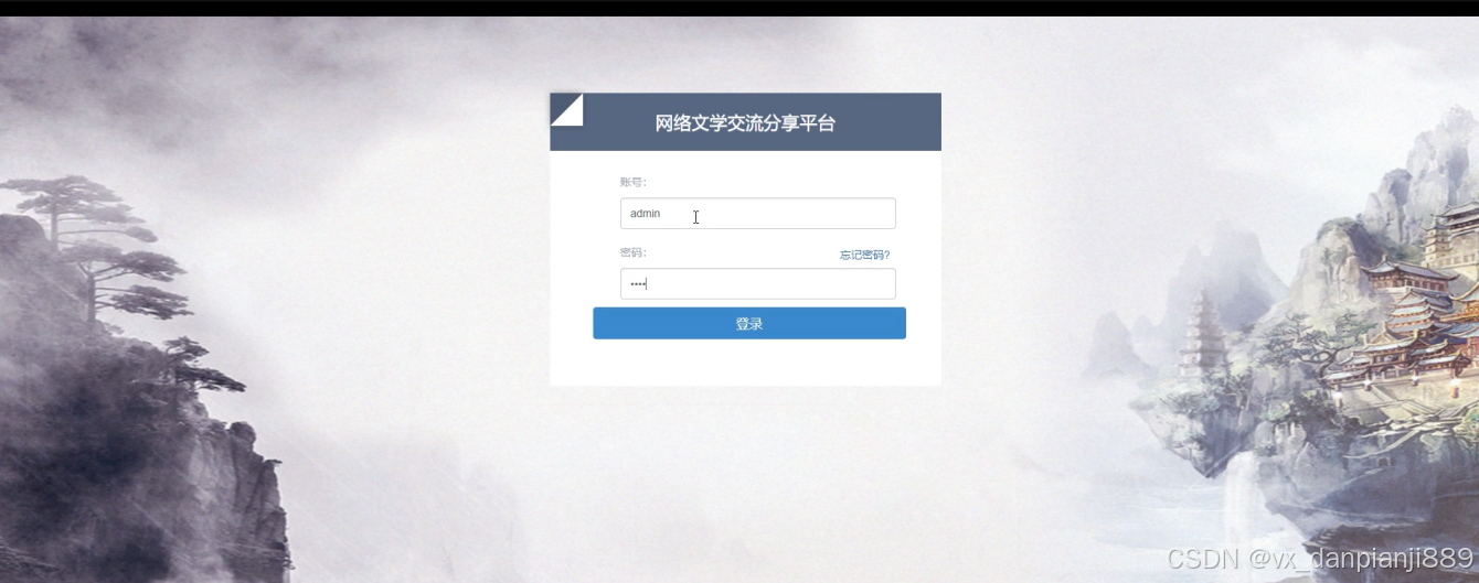 管理员登录,通过填写注册时输入的账号+密码进行登录,如图4-6所示。