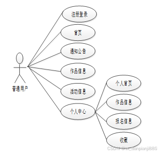 (2)系统首页展示:系统首页展示通知公告、作品信息和活动信息,让用户第一时间了解平台的重要信息和最新动态,方便用户浏览和参与平台的各项活动。