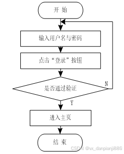 用户登录需要校验用户名、密码是否输入正确,是否输入为空,具体流程图如图所示,用户登录流程图如图2-1所示。