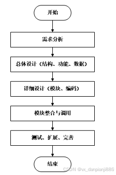 个性化线上点餐系统开发时,首先进行需求分析,进而对系统进行总体的设计规划,设计系统功能模块,数据库的选择等,本系统的开发流程如图3-1所示