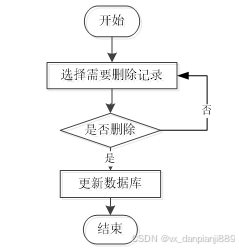 管理员可以对信息等进行信息的删除,对要删除的信息进行选中后,点击删除按钮,系统会询问是否确定,若点击确定,则系统会删除掉选中的信息,并在数据库内对信息进行删除,删除信息流程图如图3-6所示。