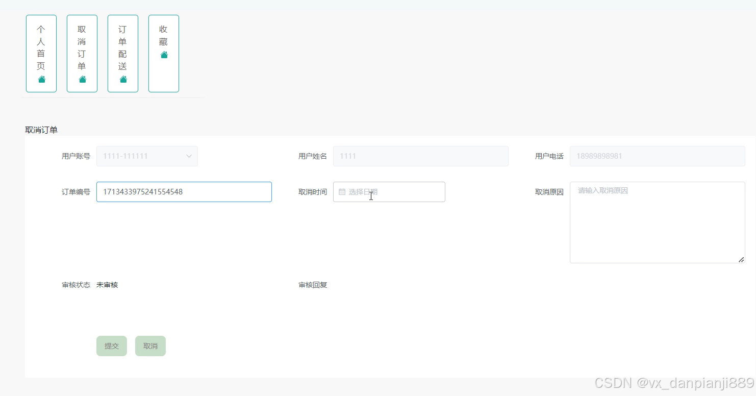 取消订单管理,个性化线上点餐系统中的管理人员在取消订单管理页面可以查看取消订单列表和取消订单添加等内容,并根据需求进行查询、重置、删除等操作。取消订单列表界面如下图所示。
