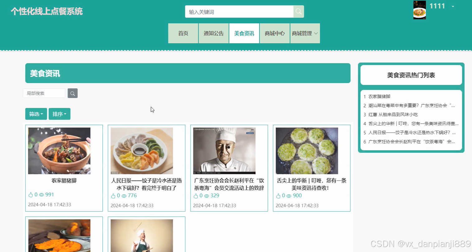 关键词 :个性化线上点餐系统;Django框架;Mysql数据库;用户画像