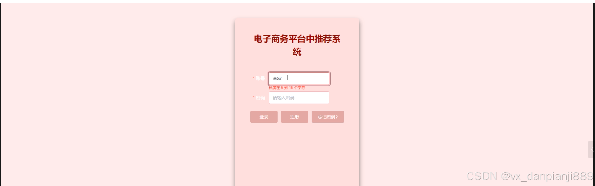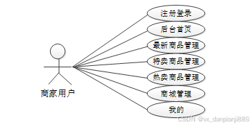 - 注册登录:商家可以通过注册成为系统用户,注册后需由管理员进行审核,审核通过后可以用账号密码登录系统。