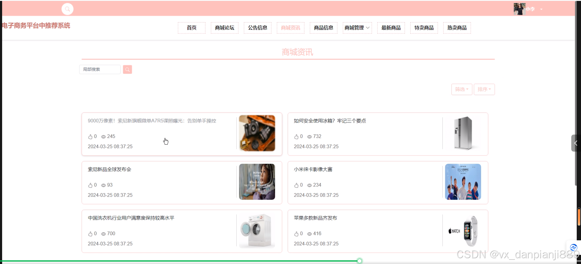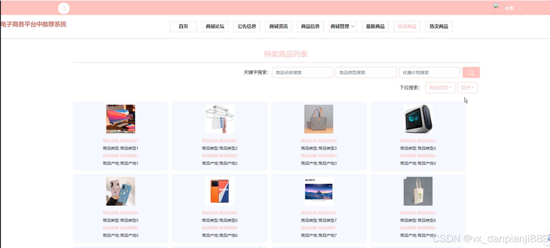 - 首页:用户可以查看首页展示的轮播图、公告信息、商品信息、最新商品推荐等信息。