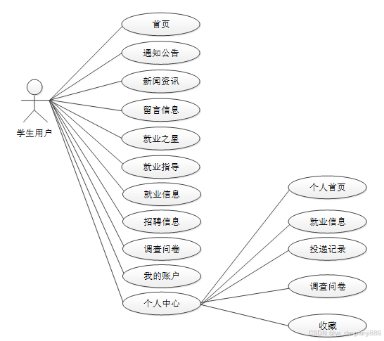 图3-1 高校大学生就业管理信息系统学生用户角色用例图
