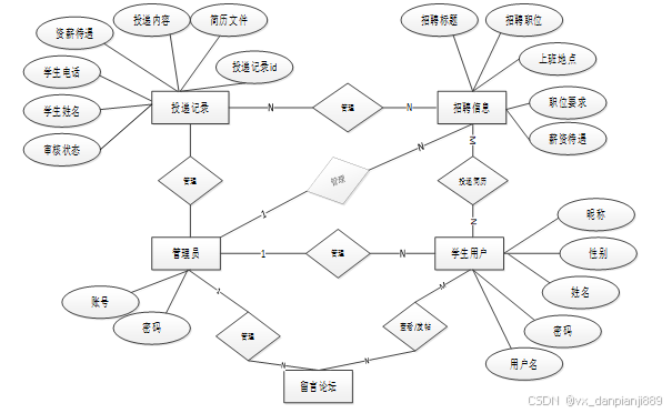 借助目前的UML建模软件,ER图使其他用户可以快速轻松地了解系统的功能以及他们之间的关系。根据就业信息的系统分析结果,结合系统的功能模块设计,设计出符合系统的各信息实体。