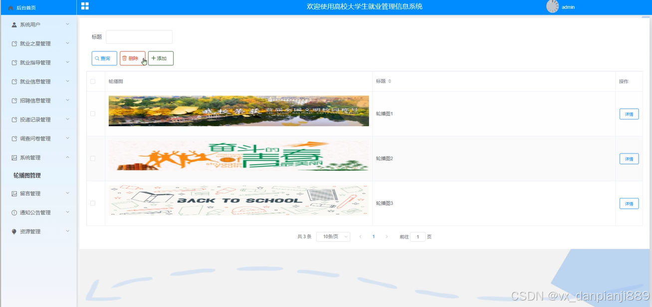 (9)系统管理:管理员点击“系统管理”菜单可以对首页展示的轮播图进行管理。