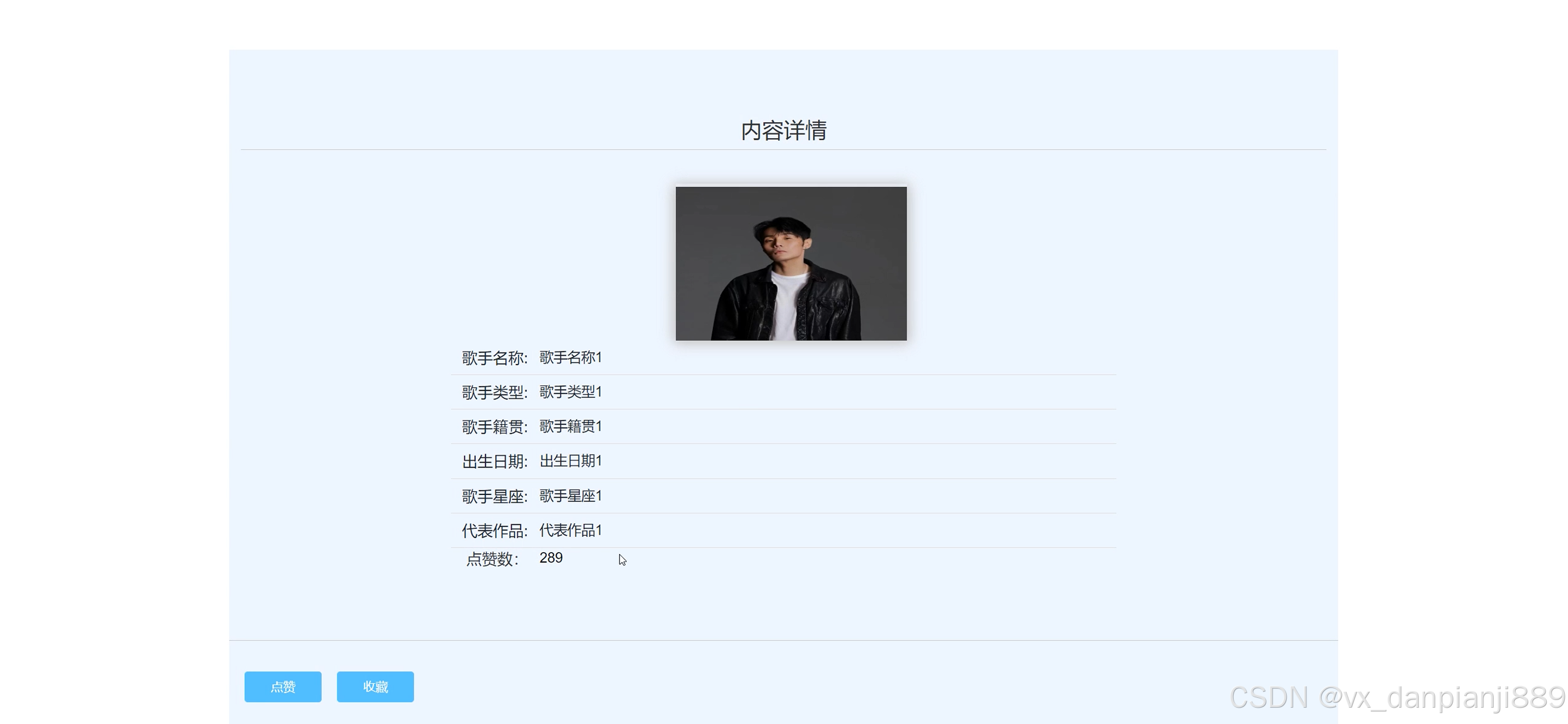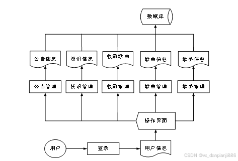 歌手信息模块的实现是主要介绍歌手档案,包括歌手简介、专辑列表、代表作品、演唱会信息等,方便粉丝们追踪偶像动态,并全方位了解艺术家的作品及生涯。还可以对喜欢的歌手信息进行点赞收藏和评论。歌手信息流程图如下所示。