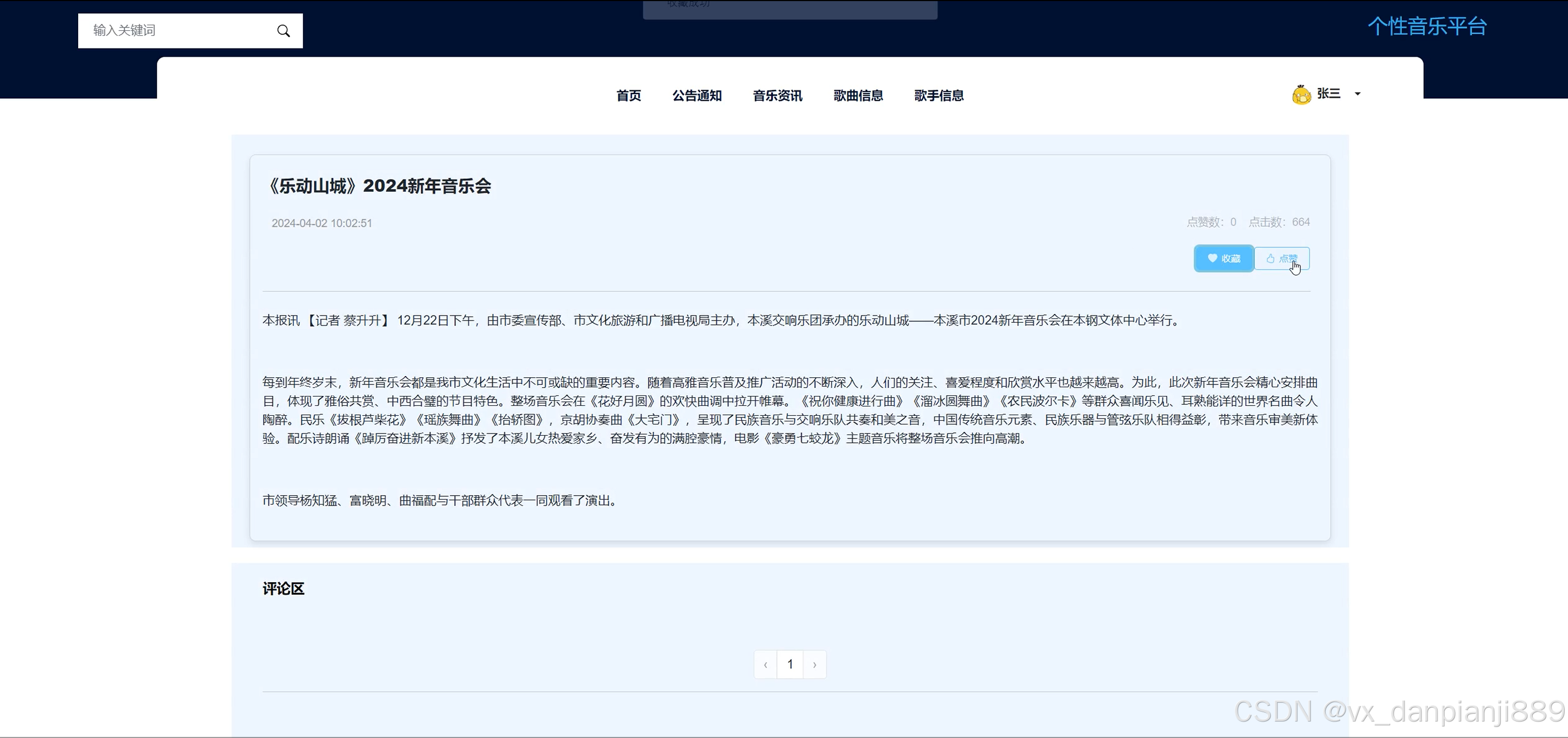 | 用例描述 | 用户可以在音乐资讯发表自己的想法和意见,并进行交流互动 |