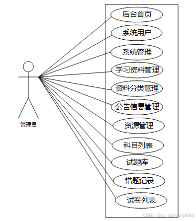 基于微信小程序的考研政治刷题系统中管理员用例图如图2.2所示:
