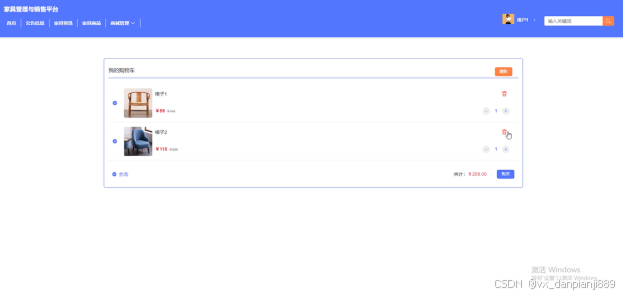 商城管理: 提供用户对购物车中家具的管理功能,包括添加、删除和编辑家具数量。