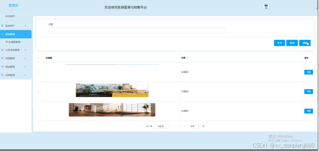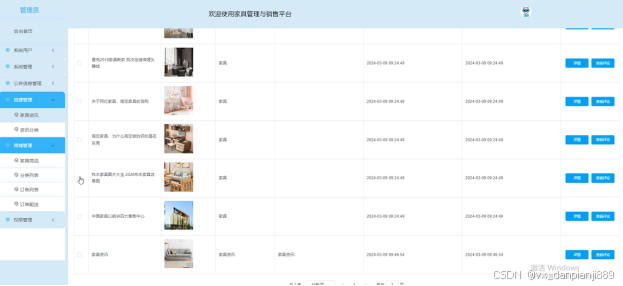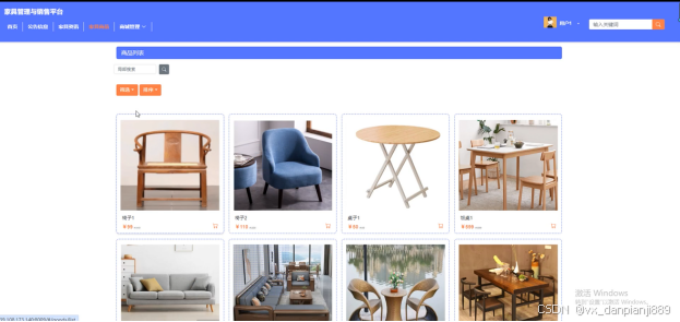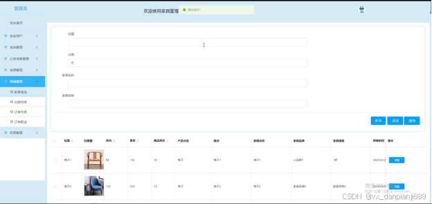 管理员点击“家具商品”菜单,管理员可以管理平台中的家具商品信息,包括添加、编辑和删除商品。界面如下图所示。