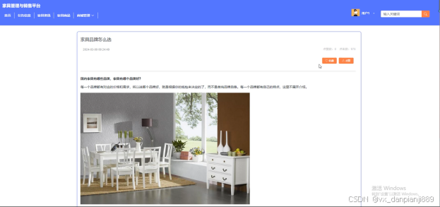 家具资讯管理: 管理平台发布的家具资讯内容,包括添加、编辑和删除资讯。