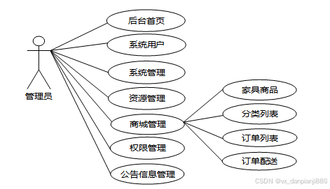 图2-4基于SpringBoot的家具管理与销售平台管理员角色用例图