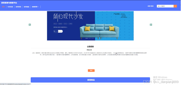 首页: 展示平台的主要功能入口、最新的公告信息和家具资讯,引导用户浏览和购买。