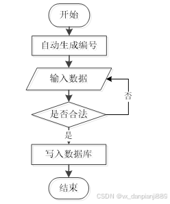 用户成功登入系统后就能够实现增加数据的操作,增加数据的编号是特定的,系统生成,用户不能随意填写,除了编号以外,其他增加信息用户自己填写,填写后的信息经过系统验证,验证合法通过就显示增加数据成功了,相反的话,就没有增加成功,图2-4显示的就是在增加数据时的流程。