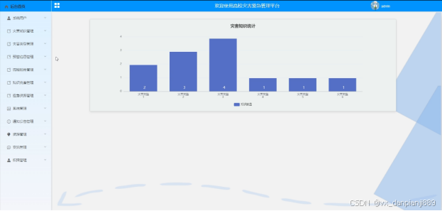 - 后台首页:可查看灾害知识统计信息数据分析。