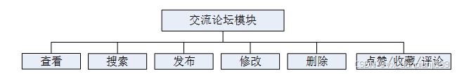 高校灾害紧急管理平台是一个交流性质的公开平台,用户在平台的交流论坛可以发布帖子并进行点赞、收藏和评论,增加用户之间的互动性。具体的结构图如下: