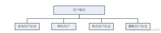 本系统的用户包括后台管理员和前台用户,两种用户模块的功能基本是相同的,用户比管理员多了一个注册功能,所以以用户模块的结构图为例进行分析,用户模块结构图为例进行分析,如下图: