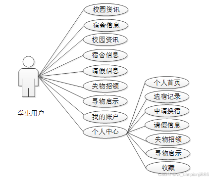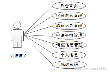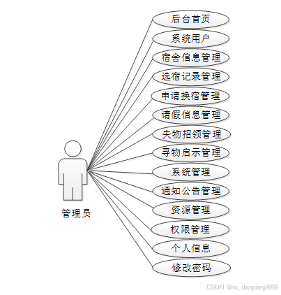 通过2.3功能的分析,得出了本昌吉职业技术学院宿舍管理系统的用例图: