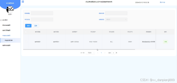 - 请假信息管理:可查看所有请假信息信息,进行增改删查操作,支持学生姓名、审核状态搜索,可点击查看详情,进行审核。