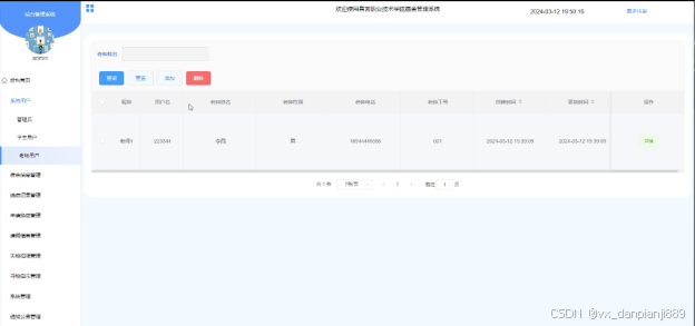 - 系统用户:可对学生用户、老师用户和管理员进行管控,包括进行增删改查操作,老师用户由管理员添加(头像、账号、密码、昵称、邮箱、状态、老师姓名、老师性别、老师电话、老师工号),点击可查看详情。