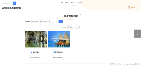 第4章 阐明了云南旅游景点指南系统各个功能模块的实现,以图文的形式进行展示。