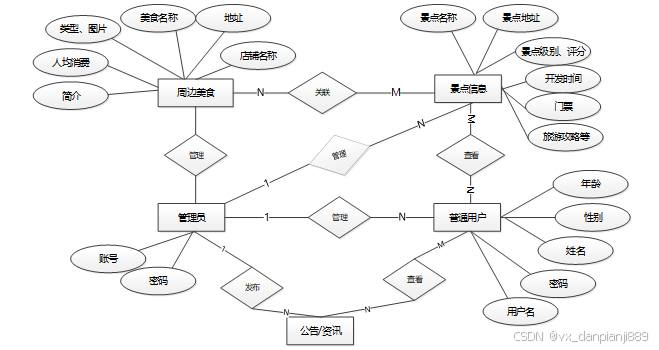 下面是整个云南旅游景点指南系统中主要的数据库表总E-R实体关系图。