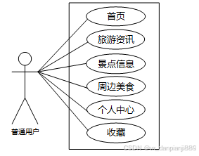 云南旅游景点指南系统中普通用户角色用例图如图2.1所示: