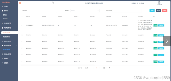 - 爬虫数据管理:管理员可以管理爬虫获取的景点信息,包括景点名称、地址、级别、评分、热度、评价人数等,确保数据的准确性和完整性。