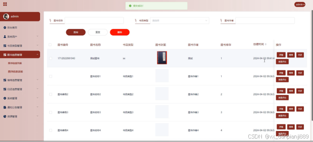 - 图书信息:管理员可以查看图书信息列表中某本书籍的详情和评论,可以对图书信息进行增删改查操作。