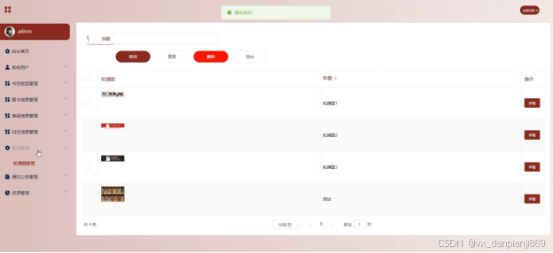 系统管理界面,管理员对轮播图进行管控。管理员可以轮播图信息进行增删改查操作。其界面如下图5-9所示。