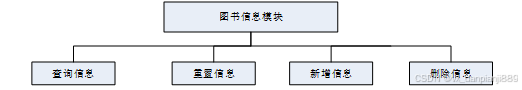 图书信息模块是本系统中的重要功能之一。该模块的设计旨在提供对图书信息的发布、编辑、删除和查看等管理功能,以便及时、准确地向系统用户发布相关的图书信息。其模块功能结构,具体的结构图如下图4-4: