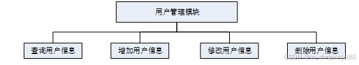 用户管理模块是系统中一个重要的功能模块,它涉及用户的注册、登录、个人信息管理等操作。在用户模块设计中,我们将定义用户数据的结构和属性,包括用户名、密码、邮箱等。同时,还需要实现用户注册、登录、修改密码等功能,并对用户输入进行验证和处理。用户管理模块的结构图如下图4-3: