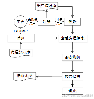 房屋数据可视化预测系统是中需要存储不少房屋信息,其模块功能结构,具体的结构图如下: