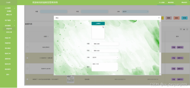 (4)资源管理:管理员点击“资源管理”菜单能够对其下子菜单房屋资讯和房屋资讯的分类进行增删改查。