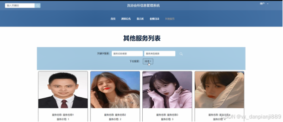 In the system, the efficient performance of Spring Boot framework and the excellent user experience of VUE front-end framework are used to realize the convenience and flexibility of information management. Through the information management and intelligent scheduling of the system, the bath club can better manage user information and achieve reservation service management, thereby improving the efficiency of the service and customer satisfaction. The system will also focus on security and scalability to ensure the security of sensitive information and the stable operation of the system.